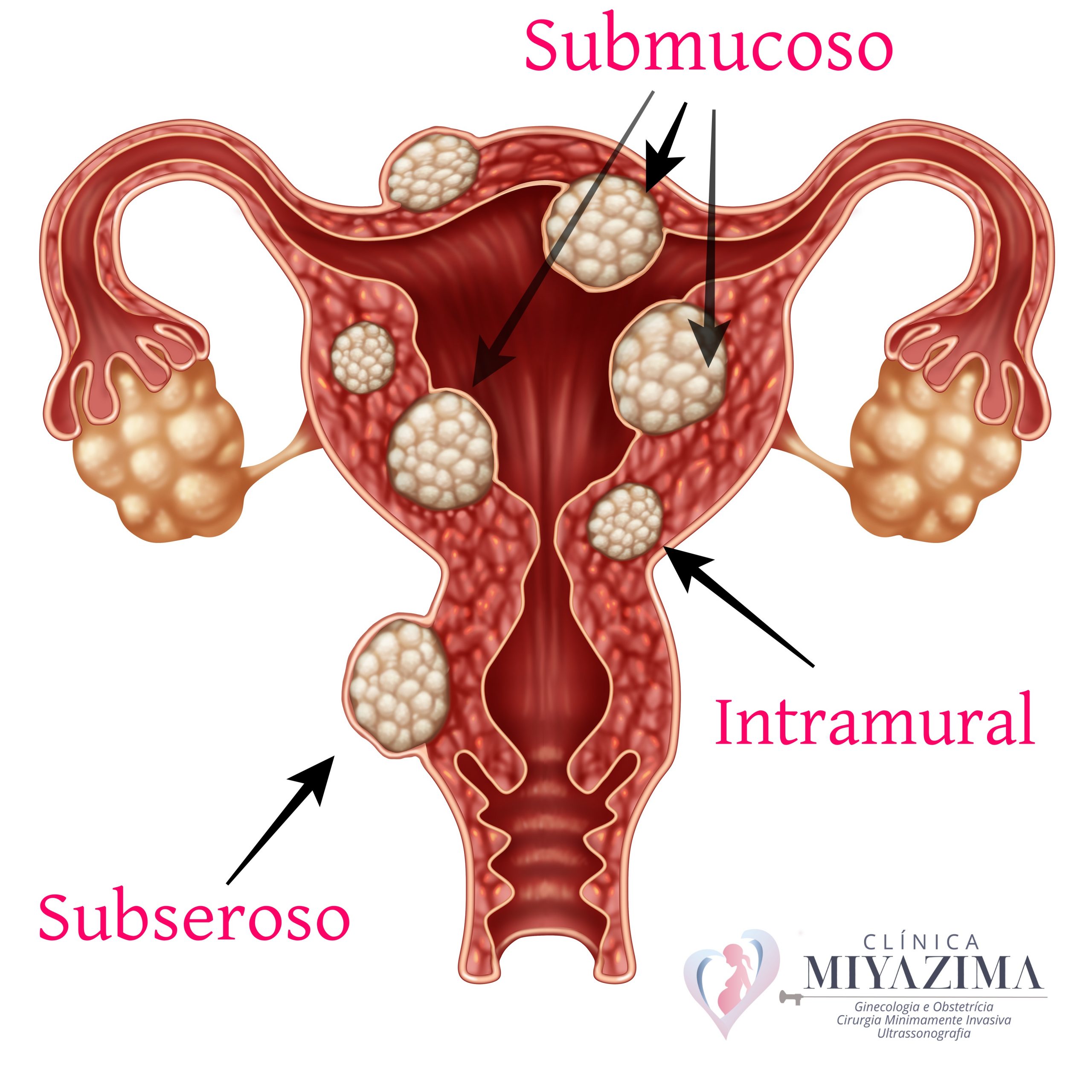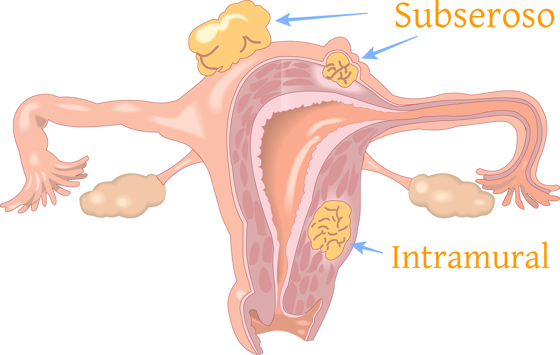 São nódulos duros formados de células musculares e fibrosas no útero, podendo crescer em diferentes localizações: subserosa, intramural e submucosa. Podem degenerar devido à diminuição da irrigação sanguínea e se tornarem amolecidas.
